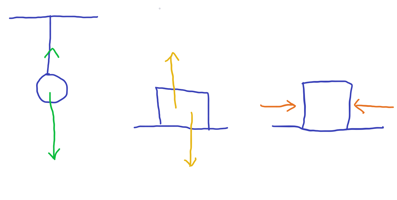 1)줄에 매달린 물체에 작용하는 중력=줄이 물체를 당기는 힘